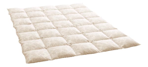 - Verdeling: Het dekbed is verdeelt in casettes. Door de ingenaaide (tussenschotjes kan de lucht ongehinderd circuleren waardoor de warmte beter behouden blijft. Het zomer deel is doorgestikt.
