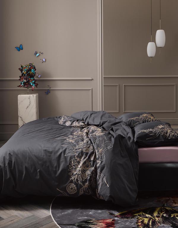 Ezzenza dekbedovertrek Malou Espresso is een prachtig dekbedovertrek gemaakt van Katoen Satijn 300TC GOTS, met gouden embroidery.