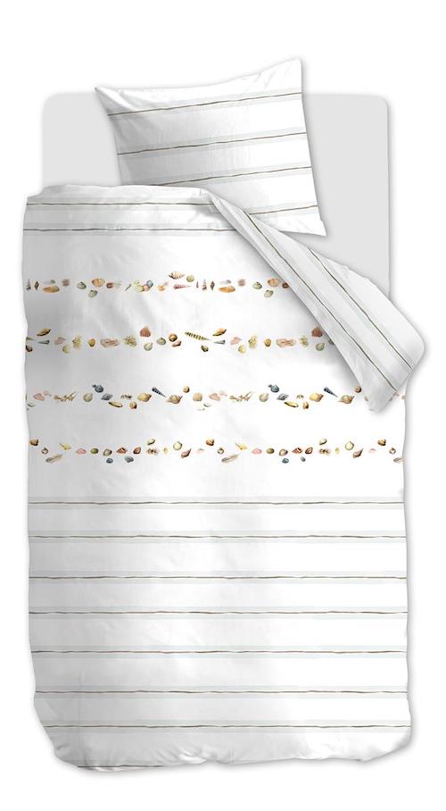 Marjolein Bastin Sea Treasures Multi dekbedovertrek heeft een prachtig zomers dessin, waarmee je direct het strandgevoel in je slaapkamer haalt. Het dessin bestaat uit grijze strepen die bovenaan en in het midden van het overtrek worden onderbroken met rijen schelpen. Er zijn verschillende schelpen afgebeeld. De kussenslopen bestaan uit een all-over print van grijze strepen. Het dessin dat is opgebouwd uit de prachtige illustraties van Marjolein Bastin, past perfect in een landelijke slaapkamer.