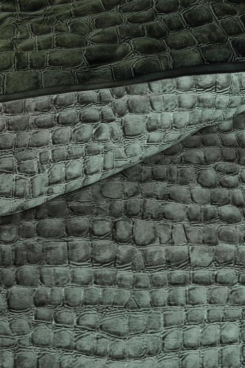 Rivièra Maison Croco Groen heeft een print van een krokodillenhuid, helemaal passend binnen de huidige animalprint-trend. Het overtrek heeft bovenaan een baan die donkerder van kleur is, welke gescheiden wordt met een smal bandje van rest van het overtrek, welke een lichtere kleur heeft. Het dekbedovertrek is gemaakt van 100% katoen, 144 TC. Het overtrek heeft een dubbele instopstrook en een totale lengte van 260 cm. Dit is extra lang waardoor het dekbedovertrek gemakkelijk onder het matras gestopt kan worden en koude voeten worden voorkomen. Het overtrek is geschikt voor dekbedden van 200 cm, 210 cm of 220 cm.